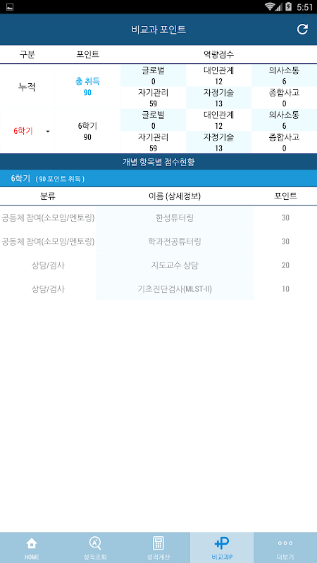 5. 현재 학기를 포함한 전체 평점/백분위/취득학점 등을 계산