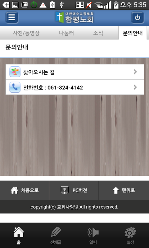 교회사랑넷 앱 고객지원실 : 1661-9106
