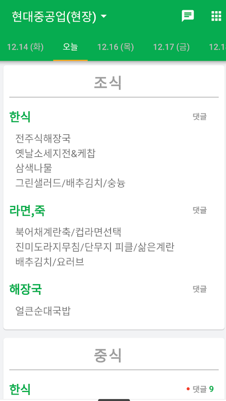 현대중공업 식단표 9.0.0