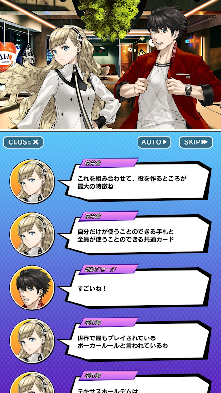 Aplikasi di mana anda boleh belajar poker! Mudah walaupun untuk pemula! Mula-mula, mari belajar peraturan dan teori dalam mod pelajaran! Menang dalam perlawanan berperingkat dan sasarkan untuk promosi ke liga M1!