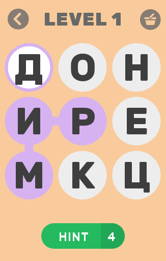 📌Игра начинается с простых уровней и постепенно усложняется более длинными названиями городов и размерами поля поля. Необходимо выделять слова для угадывания названия городов.