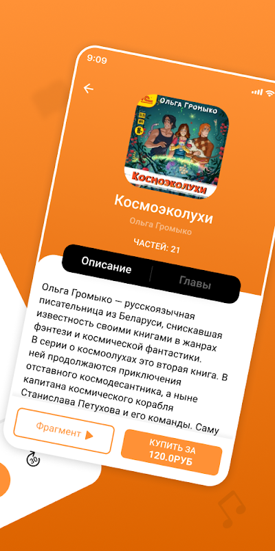 - Seluruh perpustakaan elektronik sentiasa bersama anda. Semua buku dan penanda halaman anda disimpan dalam pustaka audio. Dengar di kereta bawah tanah, di pantai, dalam perjalanan ke tempat kerja, atau hanya berjalan di sekitar bandar.