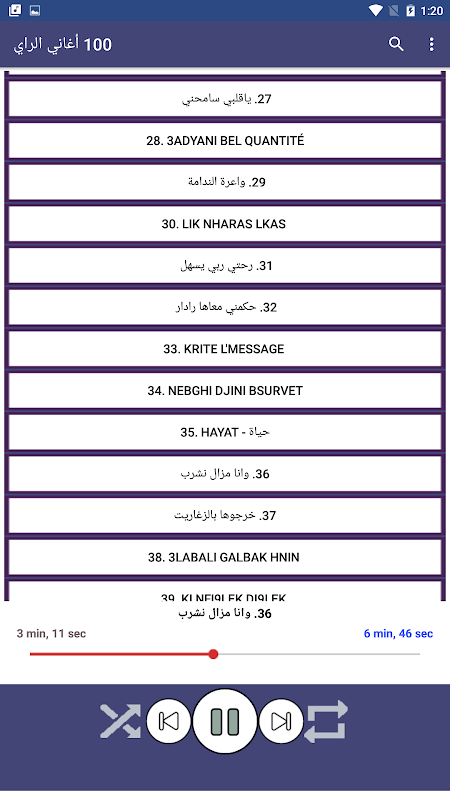 3. Aplikasi ini mengandungi 100 lagu Rai + baru yang paling hebat