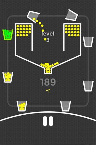 Tap on screen to open the pot. Your purpose is to fill moving cups with falling balls. Filled cups will return balls to the pot. Empty cups will be unhooked from the moving chain. The game ends when all balls or cups are lost. Each level speeds up the cups. On higher levels cups will change color. Colored cups produces higher value colored balls. The longer you remain in the game, the more points you receive.