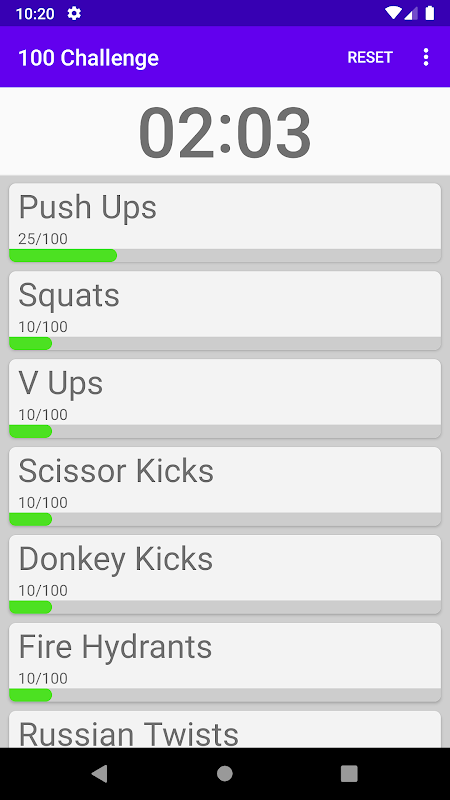 Aplikasi ini akan membantu anda mengesan kemajuan anda semasa anda menjalani latihan 100 Challenge.
