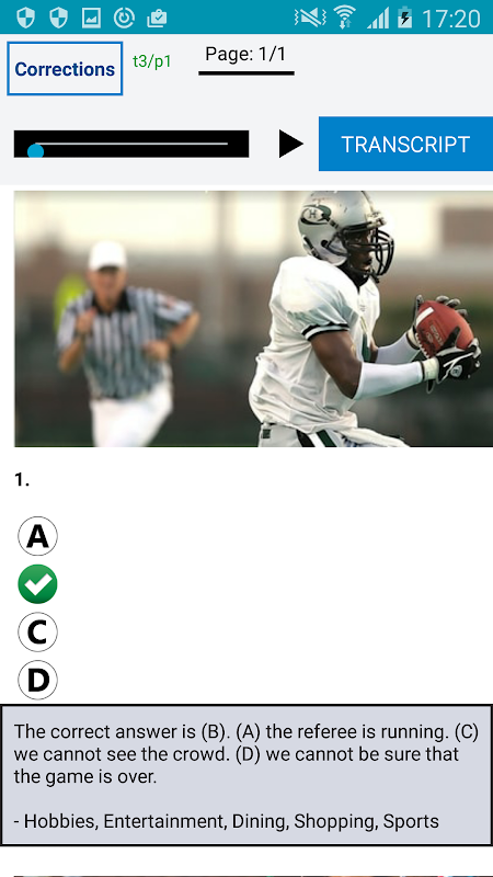 Mengenai permohonan itu: Anda akan melihat beberapa gambar yang mewakili adegan dari kehidupan seharian. Bagi setiap gambar, anda akan perlu untuk memilih audio yang paling tepat menggambarkan imej yang anda lihat. Anda mempunyai 4 jawapan yang mungkin setiap imej. Rakaman tidak akan berulang, jadi ia adalah penting untuk kekal fokus.