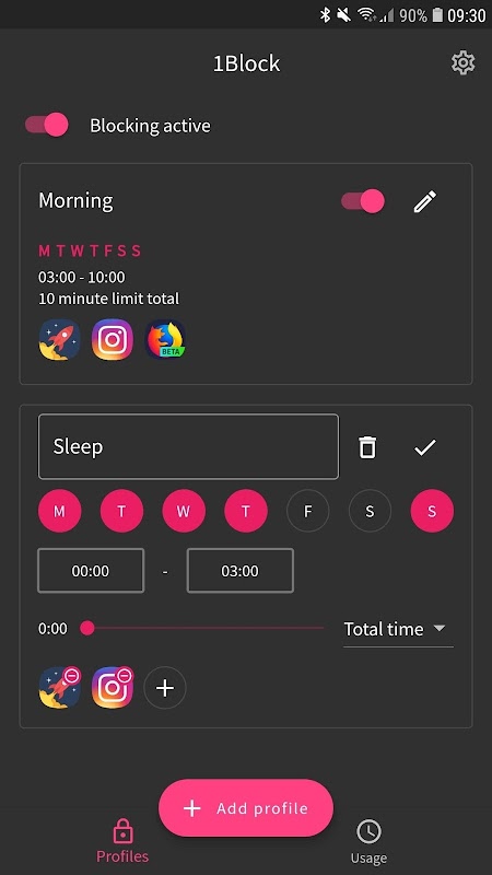 -Menetapkan beberapa profil yang menyekat hanya dalam jangka masa dan hari tertentu dalam seminggu