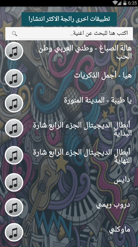 - اغاني كثيرة بحجم مناسب لجميع الاجهزة