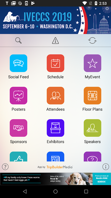 The 2019 IVECCS mobile app was designed and developed by TripBuilder Media Inc. If you have any questions, or need any support regarding how to use this app, please submit a Support Ticket (located within the Help icon in the app).