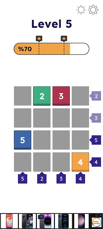 Biarkan jumlah blok sama dengan nombor dalam baris dan lajur!