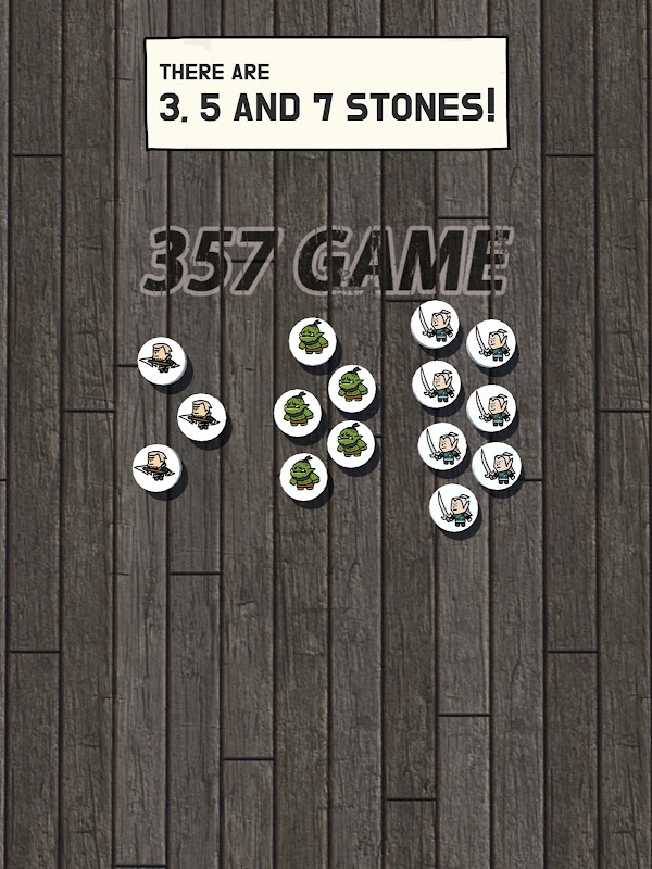 Terdapat tiga kumpulan batu. Setiap mempunyai 3, 5 dan 7 batu.