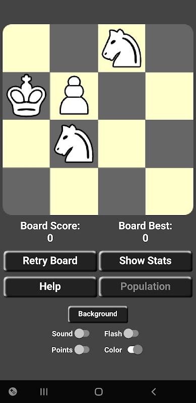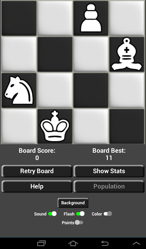 Sekiranya anda terjebak di papan, anda boleh meminta konfigurasi lain dengan memilih Populasi dan memilih papan yang anda inginkan. Anda boleh menyesuaikan kelantangan dan aliran balik sama ada Hidup atau Mati. Anda juga boleh memilih kepingan hitam atau putih.