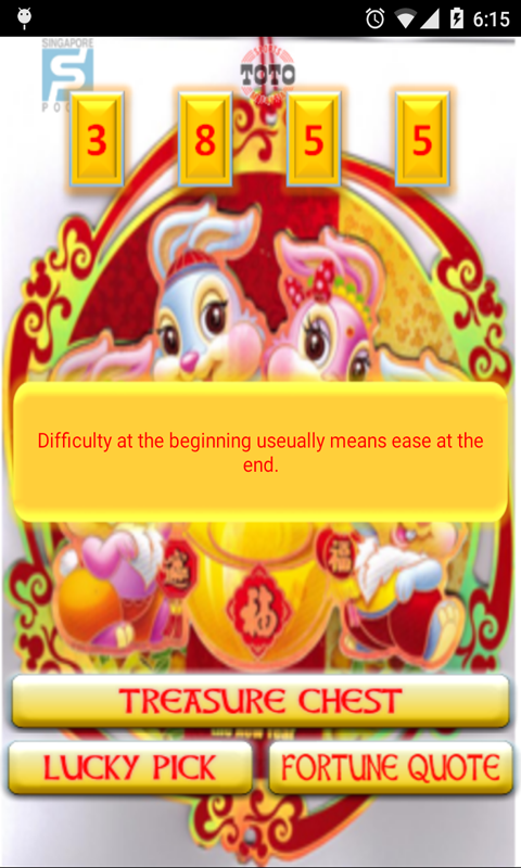 The 4D dada BERJAYA harta adalah bersamaan dengan sedikit buku khas haram cina dipanggil "Chifa", satu dengan Tua Pek Kong (Tai Pak Koong) di kulit yang ada hubung kait dengan nombor objek dan tindakan-tindakan tertentu. Anda boleh menterjemahkan impian anda, insiden, pertemuan dan inspirasi kepada nombor 4D bertuah. Ini juga 4-digit nombor bertuah penjana untuk Loteri kegemaran anda di bawah, direka untuk menjadi cepat dan mudah untuk digunakan.