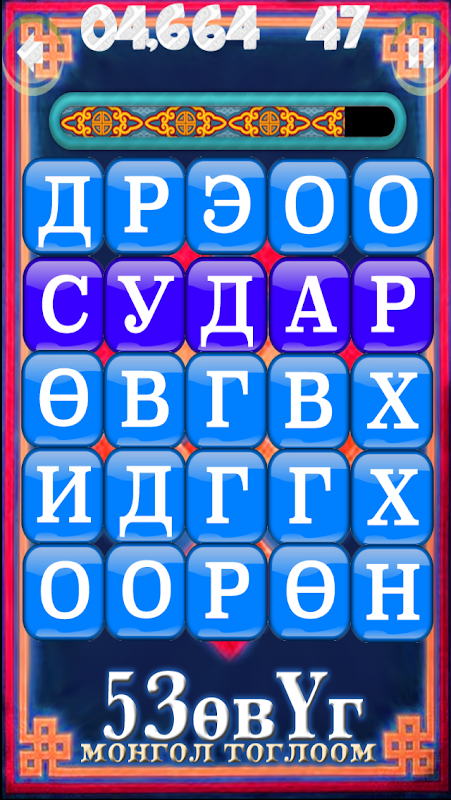 Huruf bertele-tele, teka-teki perkataan permainan mudah alih bahasa Mongolia, oleh Asuult.NET 2014. Khundaga Khurelbaatar.
