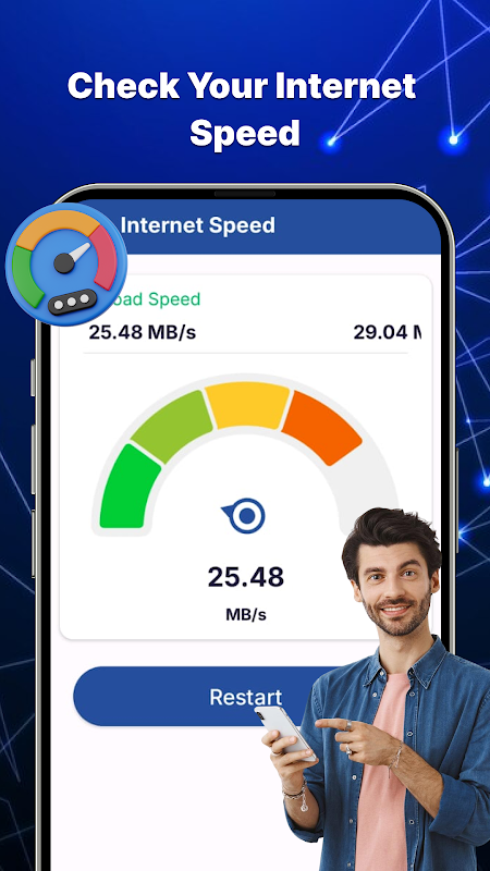 🔹 Internet Speed Test: Test your mobile internet or Wi-Fi speed Test anytime with a single click.
