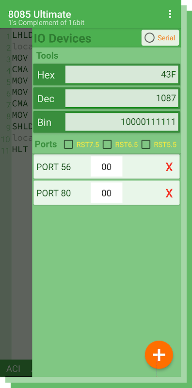 Ini adalah 8085 Ultimate for Simulation 8085 Assembly Code, Translating Assembly code to Machine code, Translating Machine code to Assembly Code Sebentar lagi.