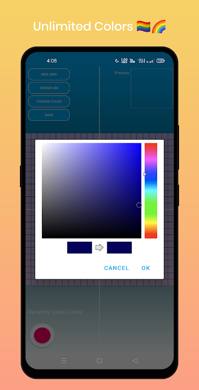 8bit Square pixel Paint provides you unlimited color palettes so you draw anything you want with any colors.