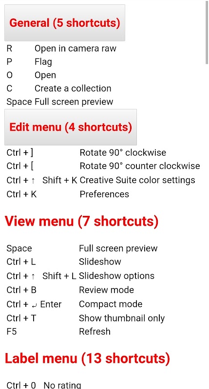 7) Adobe bridge shortcuts keys