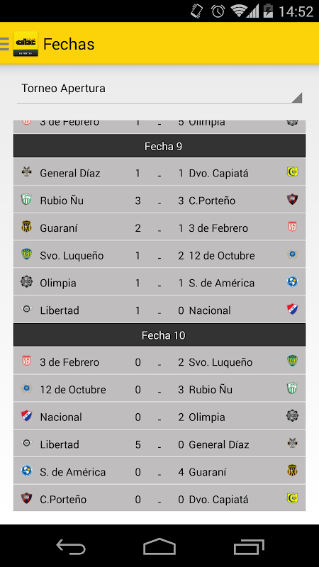 En su Android tendrá las fechas del torneo paraguayo que quedan por jugarse y las estadísticas (tabla de posiciones y goleadores) del fútbol local.