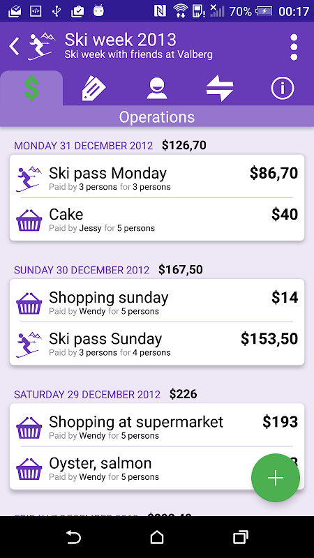 Semasa cuti, atau sebarang acara, pengurusan perbelanjaan boleh menjadi rumit. ABCBA akan membenarkan anda memasukkan sebarang perbelanjaan yang dilakukan oleh ahli kumpulan, dengan menyatakan siapa yang mesti mengambil bahagian. Aplikasi ini mengira secara automatik siapa yang berhutang kepada siapa. Tiada sambungan internet diperlukan.