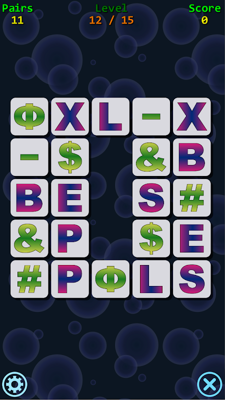 Melatih ingatan anda menggunakan 4 set simbol yang terdiri dari huruf biasa dan bentuk geometri kepada simbol-simbol kurang biasa dan angka abstrak.