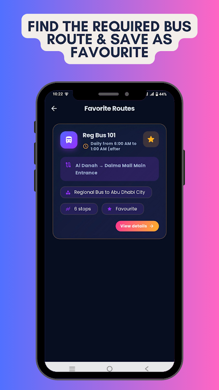 Aplikasi bas awam Abu Dhabi dilengkapi dengan reka bentuk yang lancar dan ringkas yang menjadikan navigasi mudah. Sama ada anda baru ke bandar atau komuter harian, antara muka ini membantu anda mencari laluan dalam beberapa saat.