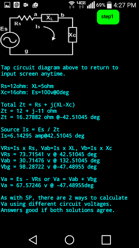 This app can do series ac circuits, parallel ac ciruits if Rs and Xs are set to 0 and series parallel ac circuits. You put in the circuit resistors and reactances and the app will guide you step by step through combining impedances to solving for all the phasor currents and voltages in the circuit. Save time on homework and get better understanding of the circuit solution process.