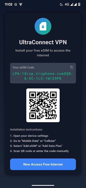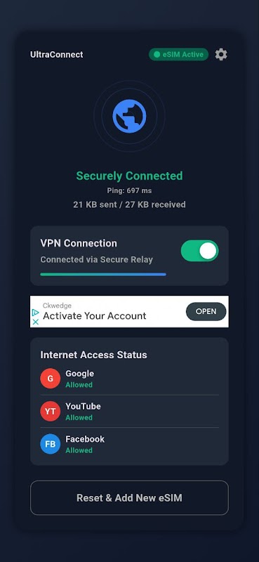 2. **Perkhidmatan VPN UltraConnect:** Sebaik sahaja anda sudah biasa dengan eSIM (atau walaupun anda melangkau terus ke ini!), gunakan VPN kami untuk mewujudkan sambungan ke Internet. Perkhidmatan VPN kami disokong oleh iklan untuk membantu memastikan ia boleh diakses.