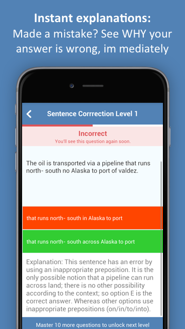 - Detailed explanations: When you make a mistake, the app tells you right away if your answer is wrong and why. You understand and remember every wrong answer.