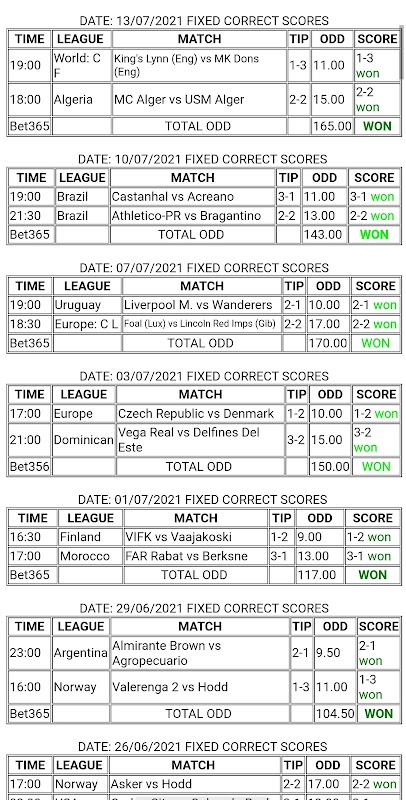 Fast and Reliable Correct Scores provide up-to-date tips correct scores for latest major and minor matches.