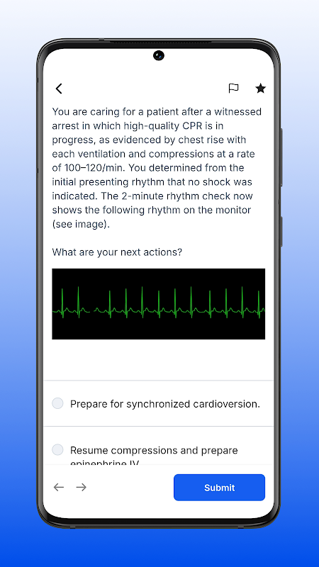 Dapatkan soalan persediaan AHA American Heart Association dan tingkatkan pengetahuan kemahiran resusitasi anda! Cuba persediaan peperiksaan BLS dan ACLS kami dengan 500+ soalan ujian ACLS! Alat kajian kami meliputi irama jantung ECG, farmakologi, kemahiran resusitasi, Sokongan Hidup Asas BLS, aplikasi praktikal dan banyak lagi. Lulus peperiksaan ACLS dengan mudah!