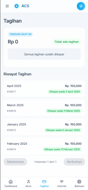Aplikasi ACS adalah platform client yang dirancang untuk memudahkan pengguna dalam mengelola layanan internet mereka. Melalui aplikasi ini, pelanggan dapat:
