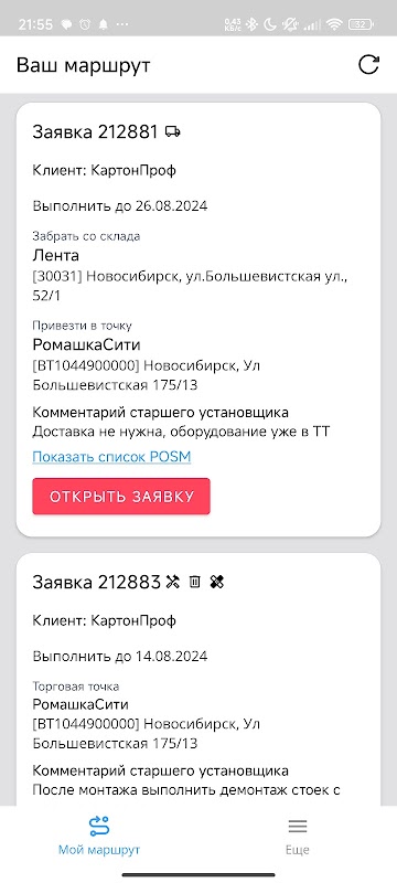 -Добавлена возможность открыть адрес торговой точки или склада в навигаторе или скопировать его