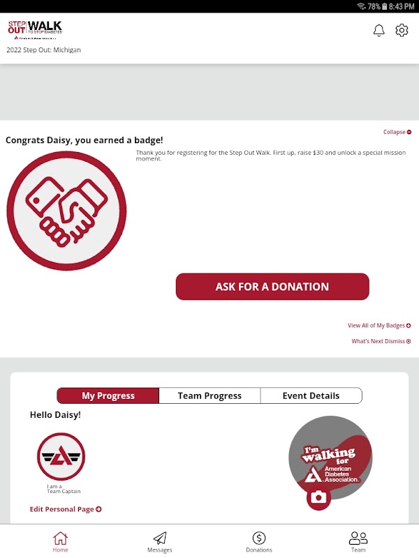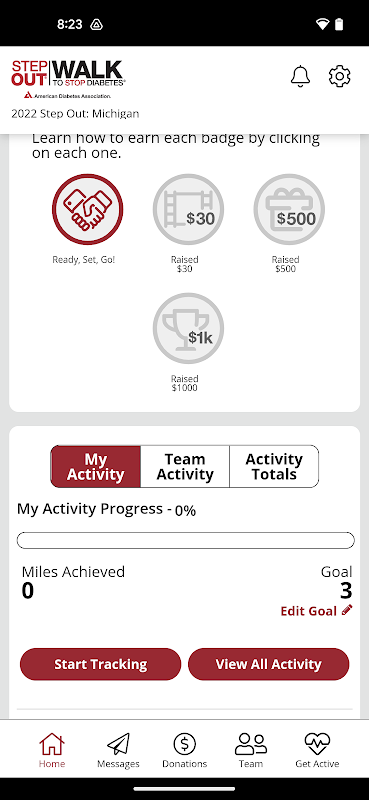 Harap maklum: Aplikasi ini hanya tersedia untuk pendaftar acara Step Out semasa. Sekiranya anda belum mendaftar untuk acara yang akan datang, sila pergi ke www.diabetes.org/stepout untuk mendaftar untuk acara yang berdekatan dengan anda.