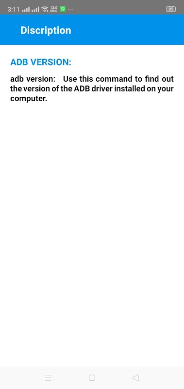 Dalam apl kami, senarai Perintah ADB disediakan untuk mempelajari arahan shell ADB. Apl arahan shell ADB untuk menjalankan arahan shell ADB. Dalam apl fastboot shell ADB Senarai arahan shell ADB disediakan untuk tugas berguna pelayan. Dengan menggunakan ADB shell Commands kami mengawal telefon Android dengan PC. Perintah Adblock digunakan untuk mengunci dan membuka kunci adb otg. OTG bermaksud On-The-Go. OTG membolehkan peranti USB bersambung dengan telefon Android. Arahan shell ADB boleh dijalankan telefon ke telefon jika kedua-dua telefon disambungkan dengan kabel adb otg.