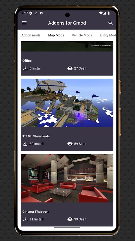 semua jenis Adons Mod Gmod tersedia dalam aplikasi ini.