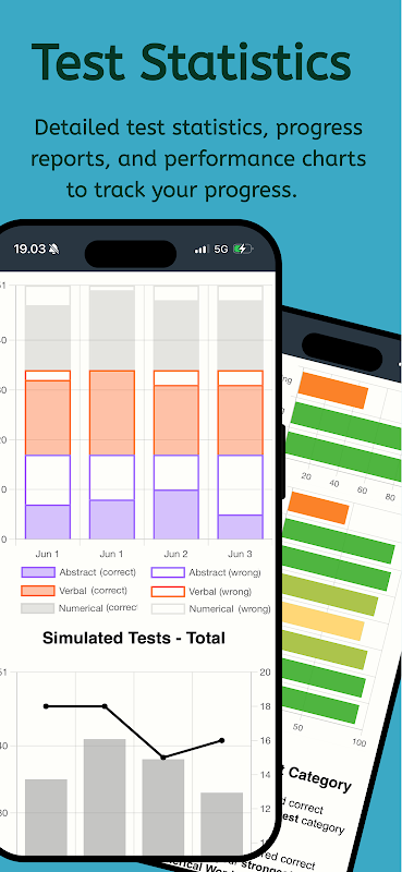 Statistik ujian terperinci, laporan kemajuan dan carta prestasi membantu anda menjejak kemajuan anda.