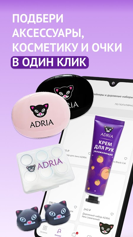 Berita baik: kini anda boleh membeli kanta sentuh dan mula menukar warna mata anda setiap hari dengan optik ADRIA! Aplikasi kami akan membantu anda memilih kanta untuk anda dan rakan baik anda: solek, kosmetik, kanta berwarna untuk mata - dan anda, seperti magnet, menarik perhatian semua orang!
