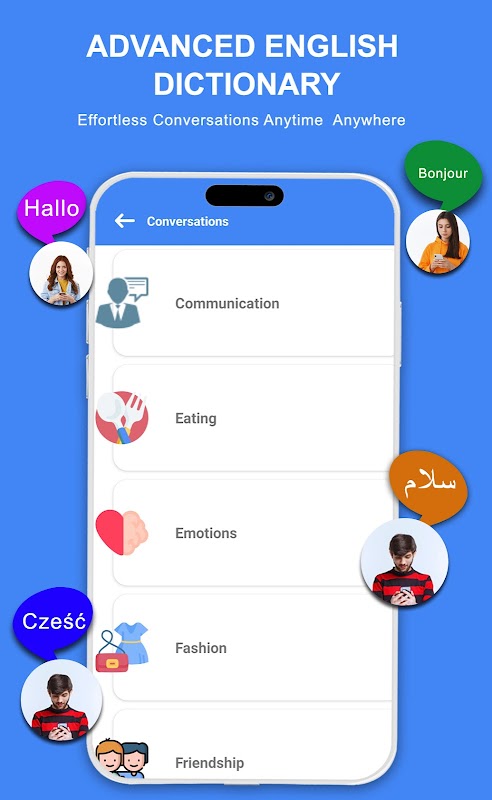 Kamus Bahasa Inggeris ke Bahasa Inggeris Luar Talian adalah salah satu daripada jenisnya, dengan ciri yang terdiri daripada Kamus Bahasa Inggeris Lanjutan, Terjemahan Suara, Idiom Bahasa Inggeris, Perbualan Bahasa Inggeris, Ejaan, sebutan dan banyak lagi.