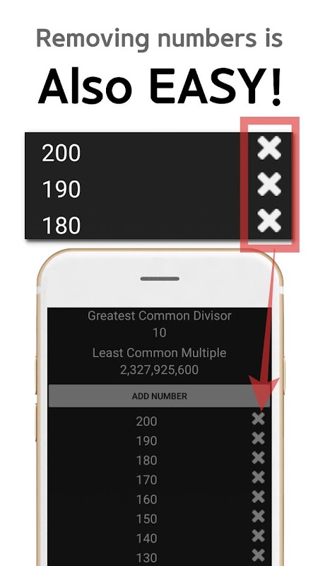Pertama sekali, tidak seperti beberapa kalkulator GCD / LCM, aplikasi pintar ini mengendalikan beberapa nombor yang dimasukkan oleh pengguna.
