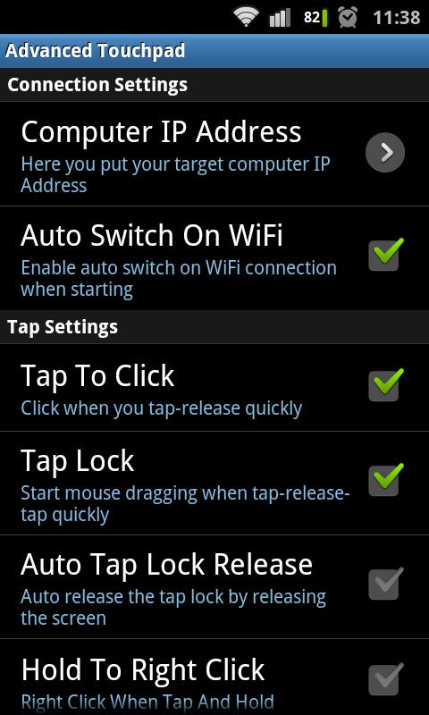 Advanced Touchpad bertukar peranti Android anda ke dalam touchpad wayarles (mouse) dan papan kekunci untuk mengawal PC anda.