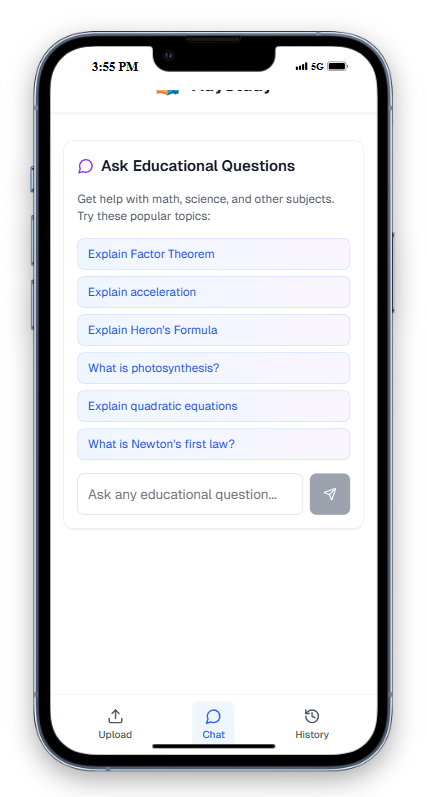 Study.Ady ialah pembantu belajar dikuasakan AI peribadi anda — direka untuk membantu pelajar menyelesaikan soalan kerja rumah yang kompleks langkah demi langkah, menggunakan OCR termaju dan penaakulan lanjutan.