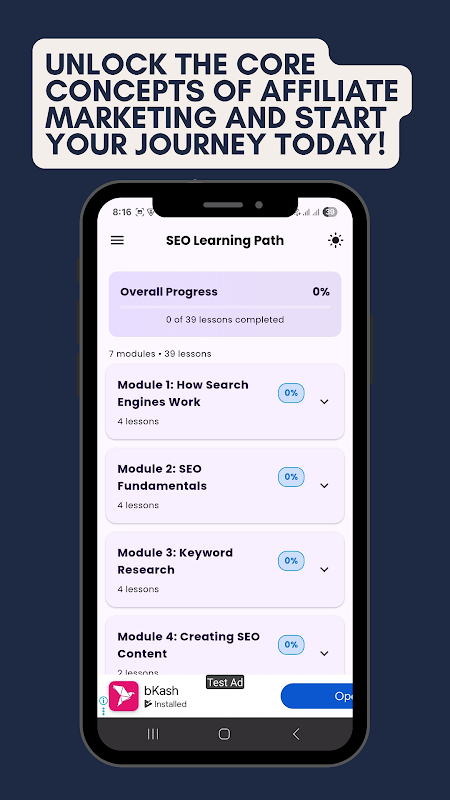 Mulakan perjalanan anda ke dunia pemasaran gabungan hari ini! Aplikasi ini ialah tutorial pemasaran ahli gabungan lengkap yang direka bentuk untuk menjadi panduan pemasaran gabungan semua-dalam-satu anda. Sama ada anda seorang pemula pemasaran gabungan mutlak atau hanya ingin mempertajam kemahiran anda, kursus pemasaran gabungan kami mempunyai semua yang anda perlukan.