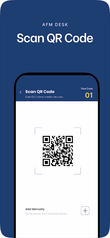 AFM Desk bertindak sebagai subapl kepada apl Pekerja AFM. Apabila pekerja menempah makanan, kod QR unik dijana. Kakitangan keselamatan / pengurus makanan kemudian menggunakan aplikasi AFM Desk untuk mengimbas kod QR ini, mengesahkan tempahan makanan dan mengemas kini rekod kehadiran dengan serta-merta. Aplikasi ini juga membenarkan kemasukan manual sekiranya QR tiada; Memberi pandangan berharga tentang corak penggunaan makanan.