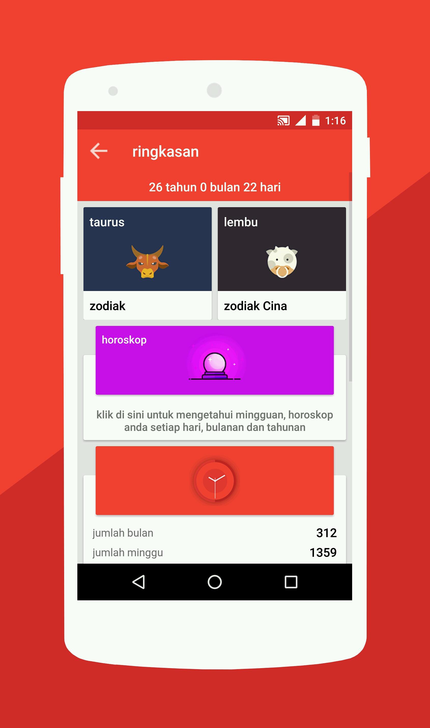 Kalkulator Umur adalah permohonan yang mudah dan elegan. kalkulator umur memberitahu umur anda yang tepat dalam Tahun bulan dan hari. Kalkulator Umur juga mengira tanda zodiak anda dan Cina tahun lahir. Kalkulator Umur juga memaparkan hari-hari bekerja daripada lima hari lahir anda yang akan datang. Kalkulator Umur direka dengan reka bentuk yang berwarna-warni dan menyokong pelbagai jenis peranti. Terima kasih kerana sokongan anda dan kami memerlukan sokongan anda pada masa akan datang.