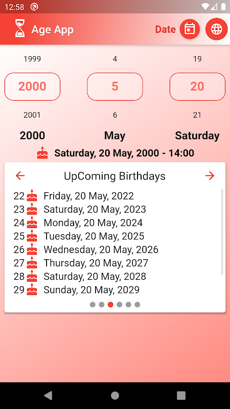 Aplikasi ini menyediakan antara muka pengguna yang ringkas dan cantik yang mudah digunakan. pilih tarikh ulang tahun anda dan / atau masa ulang tahun anda, maka aplikasi Age akan langsung mengira