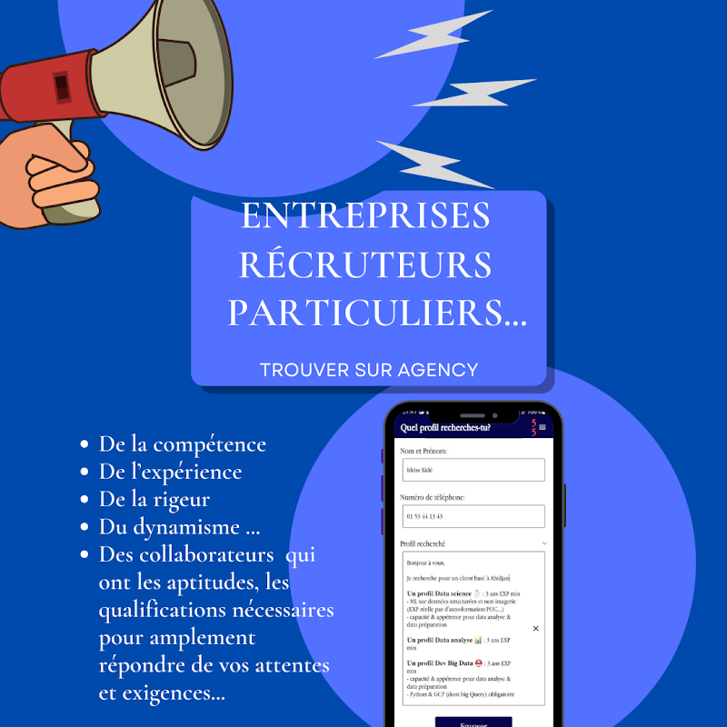 ✅ Anda sebuah syarikat, perekrut atau individu, Agensi mencari profil terbaik untuk anda. Adakah anda sedang mencari kemahiran tertentu? perkhidmatan yang berkualiti? Tiada lagi membuang masa untuk CV, temu duga, siaran...