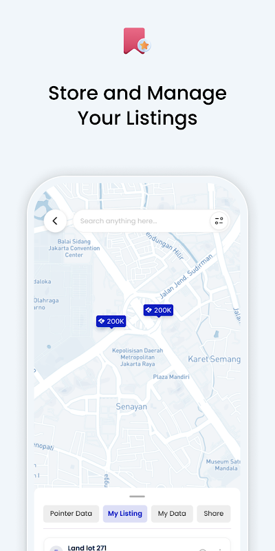 - Terokai penyenaraian melalui paparan peta interaktif, memberikan perspektif lokasi pertama bagi hartanah yang tersedia.