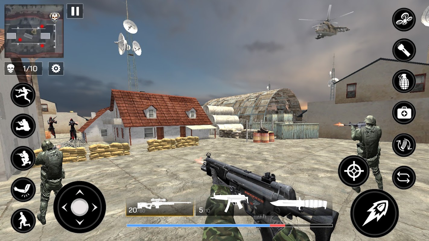 This fps commando strike shooting game will make you a specialized army commando and you will be a master of all the weapons in gun games 3d. You have to continuously conquer the terrorists' hideouts and you will unlock the most powerful weapons that will help you gain more victory as a tactical fps commando and save the world from evil terrorists in secret missions. With all the powerful modern war weapons you will be able to unlock more challenging territories and more challenging real commando shooting games experience. So don't wait and start your battle with terrorists for survival today!