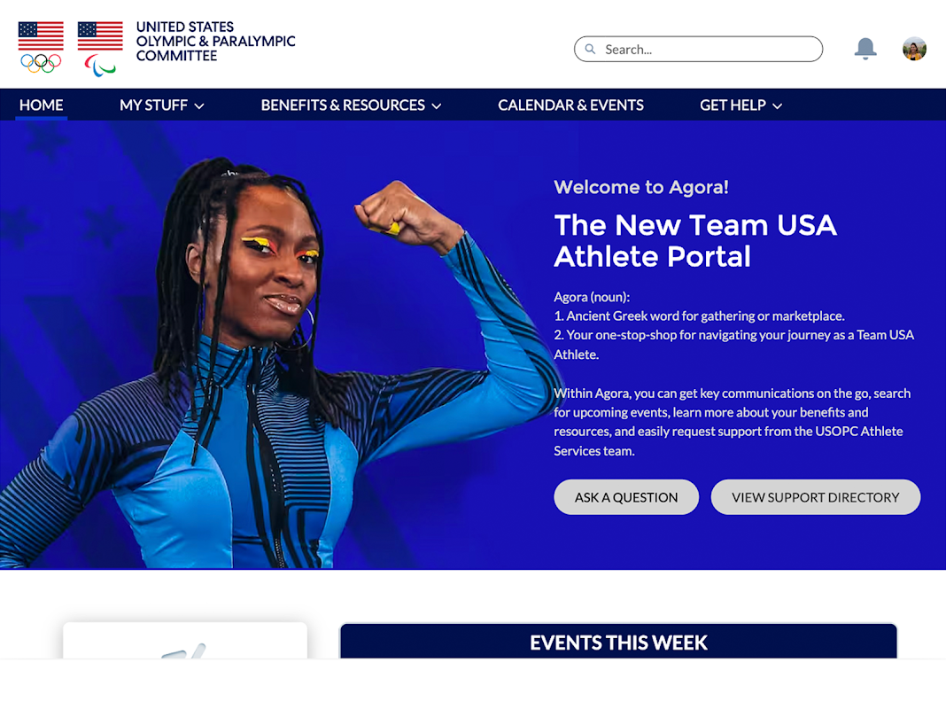 Platform semua-dalam-satu atlet Pasukan USA untuk mengakses maklumat USOPC, faedah kesihatan dan sokongan.